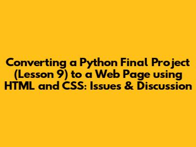 Converting a Python project into a web page using HTML and CSS involves a series of steps and considerations. This article delves into the process of transforming a Python-based final project, specifically from Lesson 9, into an interactive and visually appealing web application. We will explore the challenges, solutions, and best practices for this conversion, focusing on maintaining the project's core functionality while leveraging the capabilities of web technologies. The journey from a Python script to a fully functional web page requires a deep understanding of both Python and web development fundamentals. Let's embark on this exciting endeavor and discover how to seamlessly blend the power of Python with the versatility of the web.