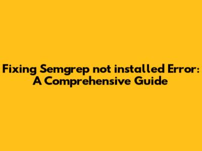 Fixing 'Semgrep Not Installed' Error: A Comprehensive Guide