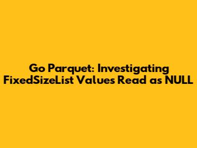 Go Parquet: FixedSizeList Bug Reads Values As NULL