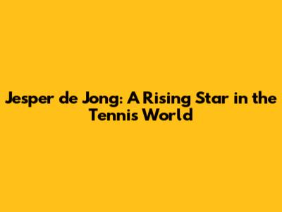 Jesper De Jong: Tennis Star's Rise & Career Highlights
