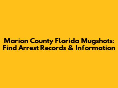 Marion County FL Mugshots: Find Arrest Records & Information